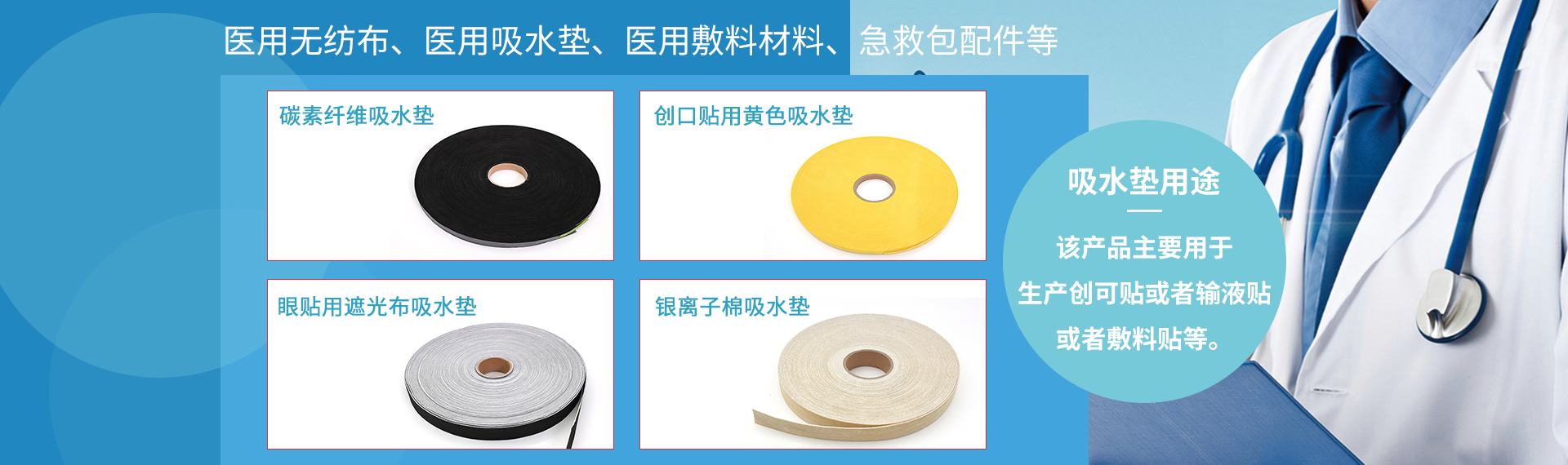 公司主要產(chǎn)品為醫(yī)用無紡布的延伸,如醫(yī)用無紡布,醫(yī)用吸水墊、醫(yī)用敷料、醫(yī)用石膏襯墊等一次性醫(yī)用耗材。